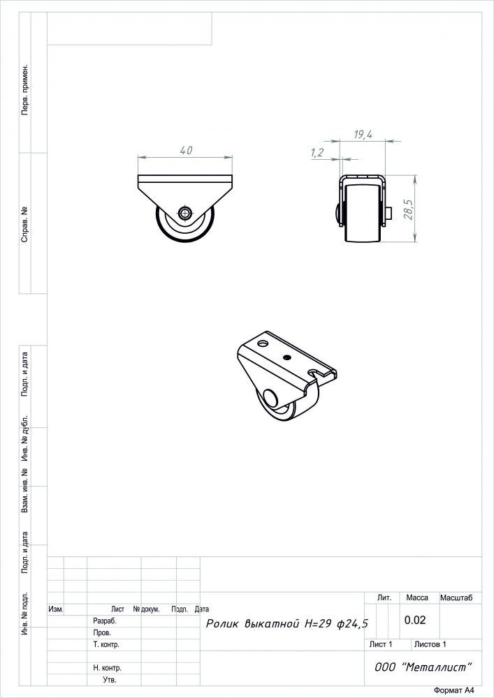 Ролик выкатной Металлист Н29 цинк (Россия)